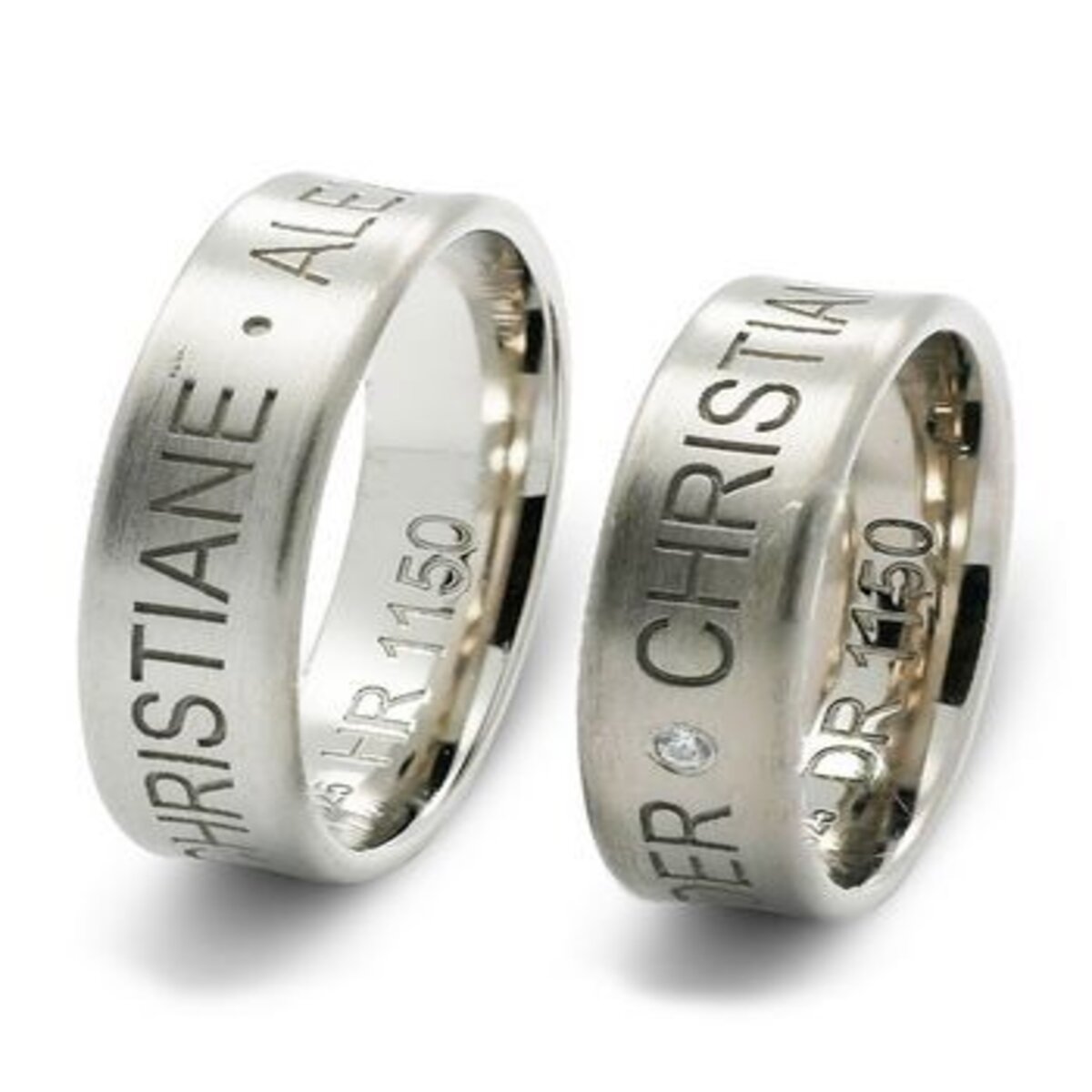 Diese Trauringe (Wörner 1150) werden von Wörner hergestellt. Alle Eheringe aus dieser Trauringmanufaktur werden in Handarbeit und viel Liebe zum Detail gefertigt. Im Gesamtpreis ist die Gravur sowie ein Etui enthalten. Alle Trauringe sind wahlweise in Gold (8 Karat, 14 Karat, 18 Karat), 925 Sterlingsilber, Palladium (500 oder 950) oder Platin (600 oder 950) erhältlich. Die Trauringe werden speziell für Sie und nach Ihren Vorstellungen hergestellt. Da es sich um eine Sonderanfertigung handelt, sind die Trauringe leider von Umtausch und Rückgabe ausgeschlossen. BombierungJa Ringbreite6 mm Ringstärke1,6 mm Steinbesatz bei Damenring1 Brillant 0,010 ct. TW/SI Lieferzeitca. 14 Tage