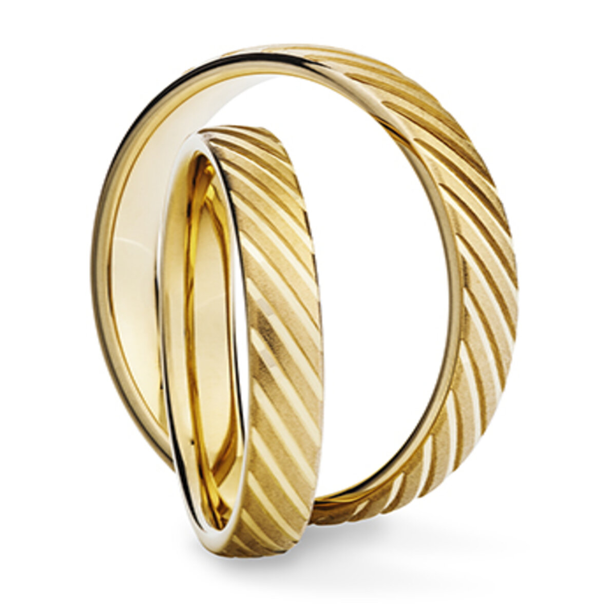 Im Gesamtpreis ist die Gravur sowie ein Etui enthalten. Die Trauringe sind wahlweise in 333 (8 Karat), 585 (14 Karat) oder 750 (18 Karat) erhältlich. Einige Modelle können auch in Silber (925) sowie in Palladium (950) und Platin (950) bestellt werden.